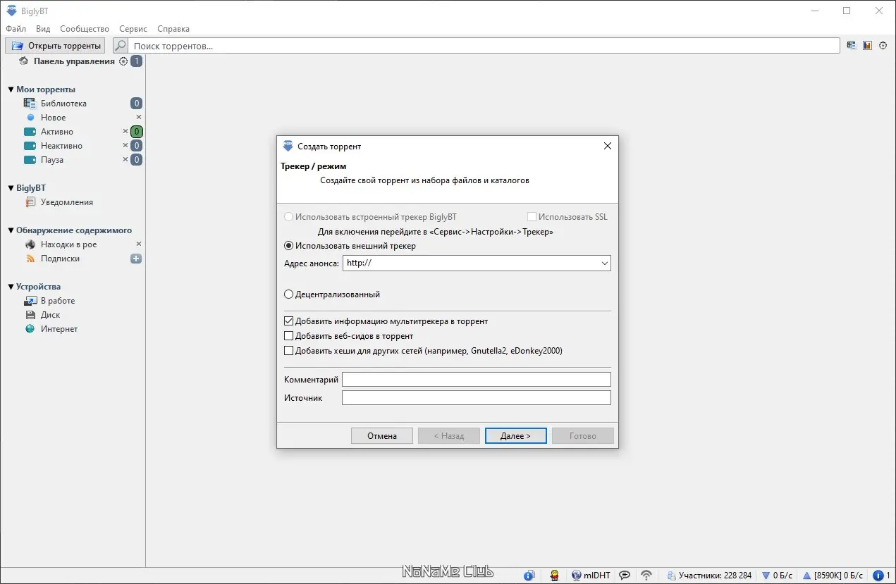 Работа с BiglyBT