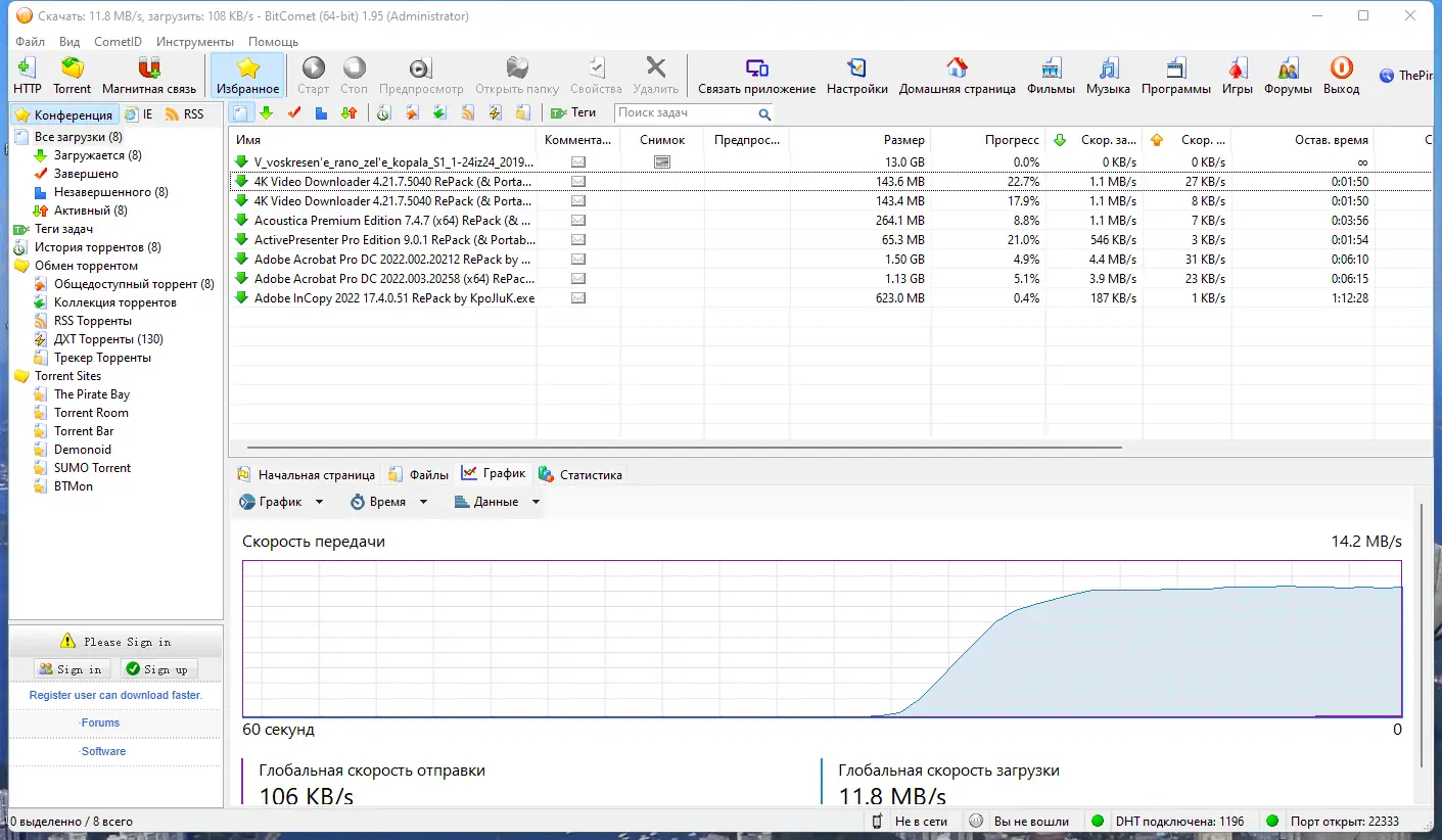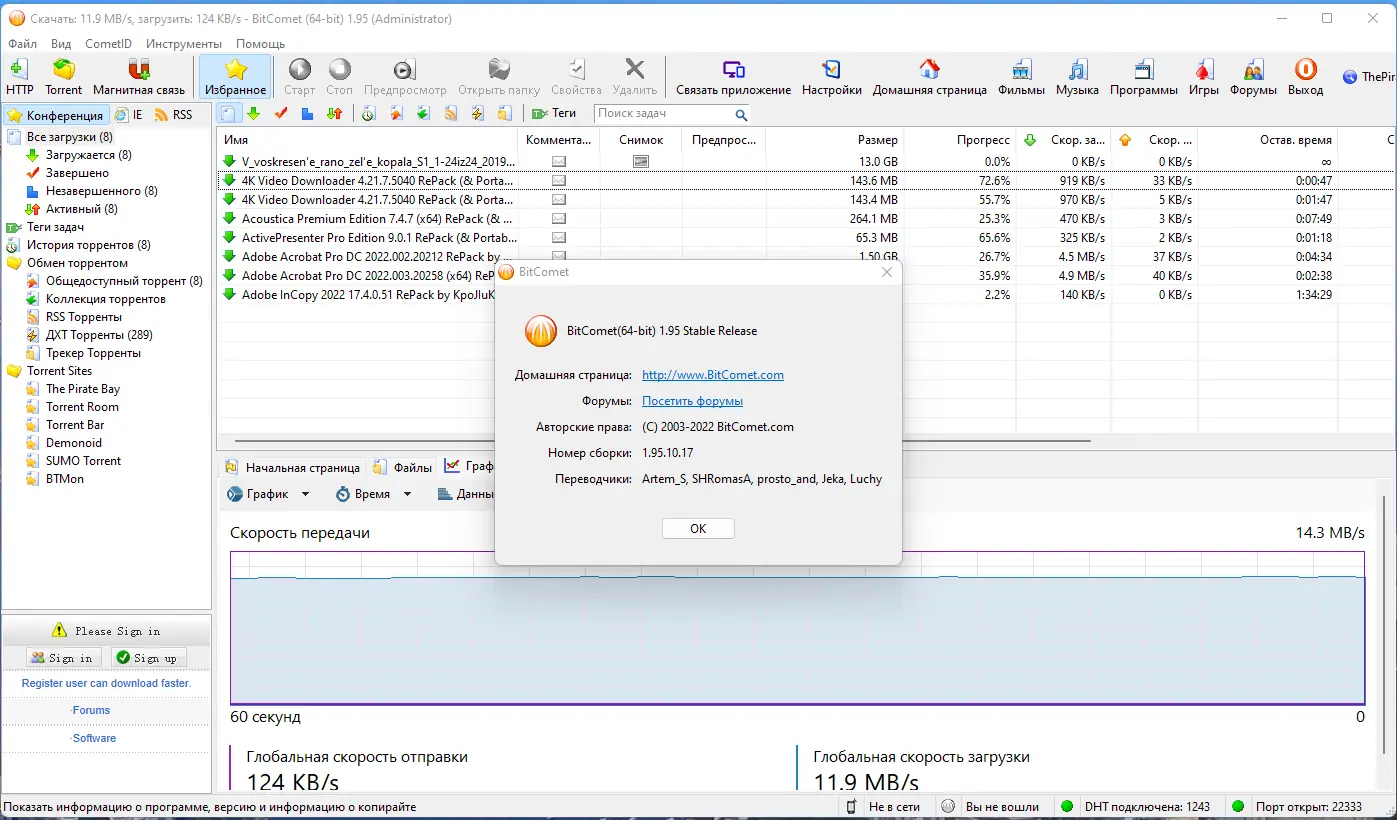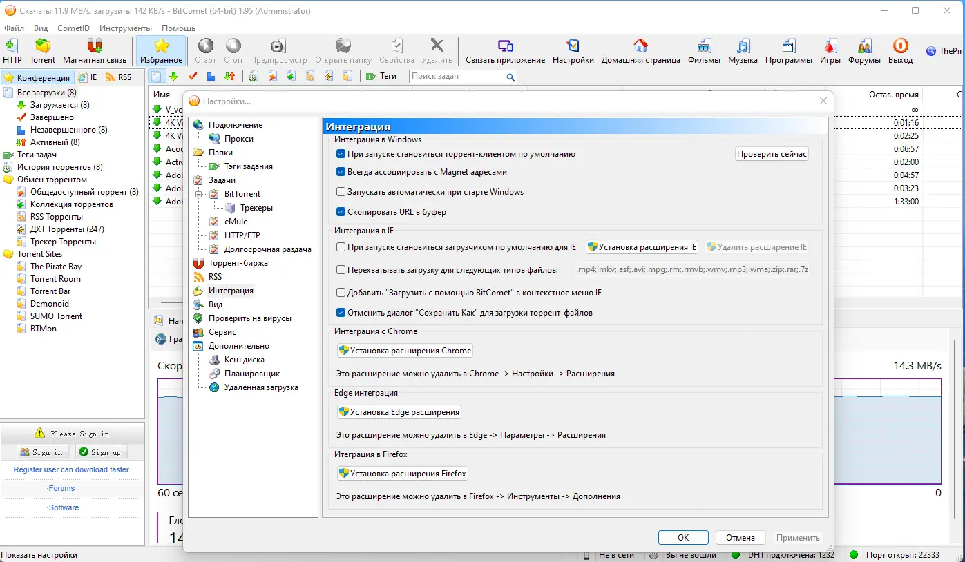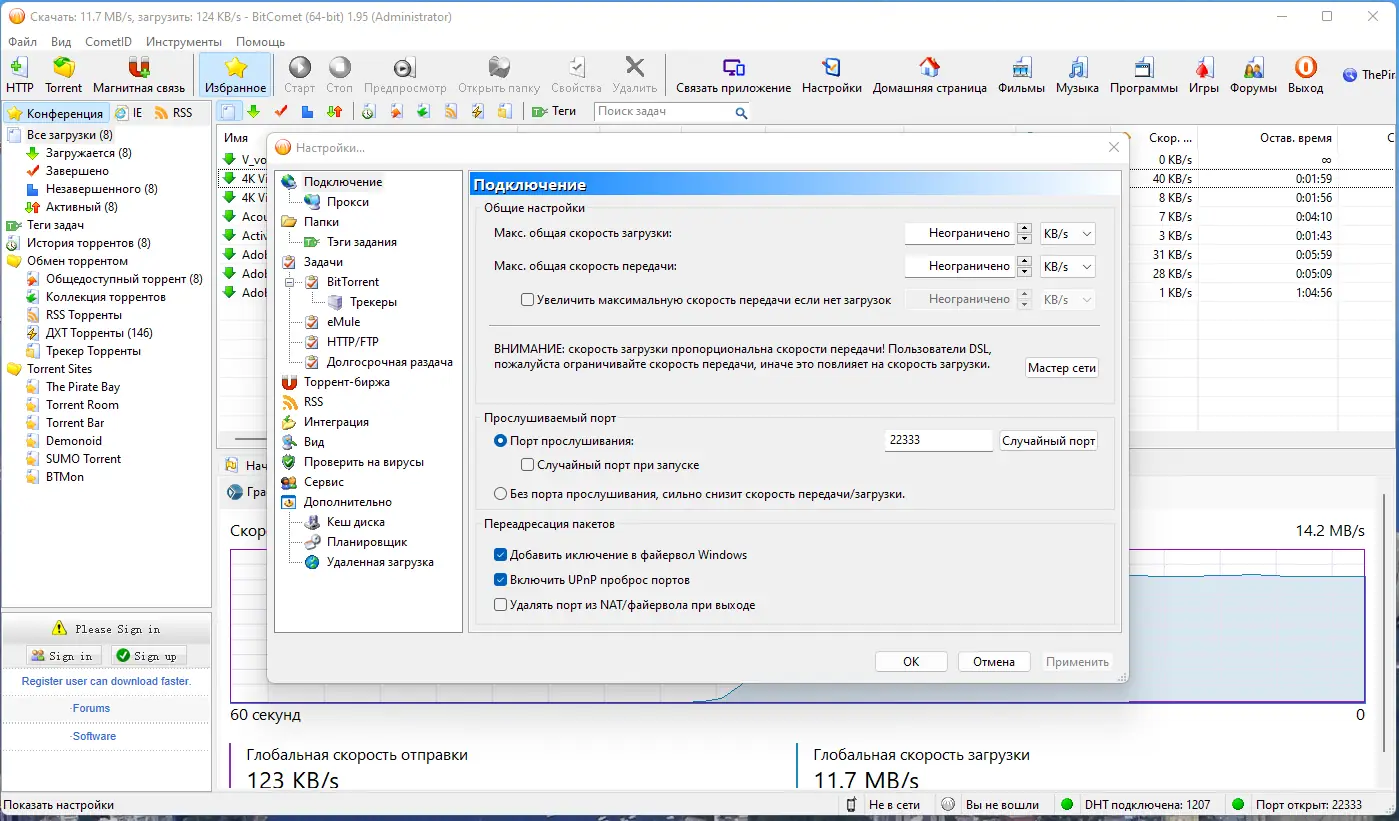 BitComet представляет собой полнофункциональный клиент для работы с протоколом Bittorrent, разработанный с акцентом на скорость, стабильность и удобство. Он поддерживает широкий спектр функций, включая работу с magnet-ссылками, создание очереди загрузок и приоритезацию задач. Программа автоматически адаптируется к различным типам соединений, оптимизируя использование кеша и сетевого трафика. Это делает её надёжным решением для постоянной работы с файлами в распределённой сети.