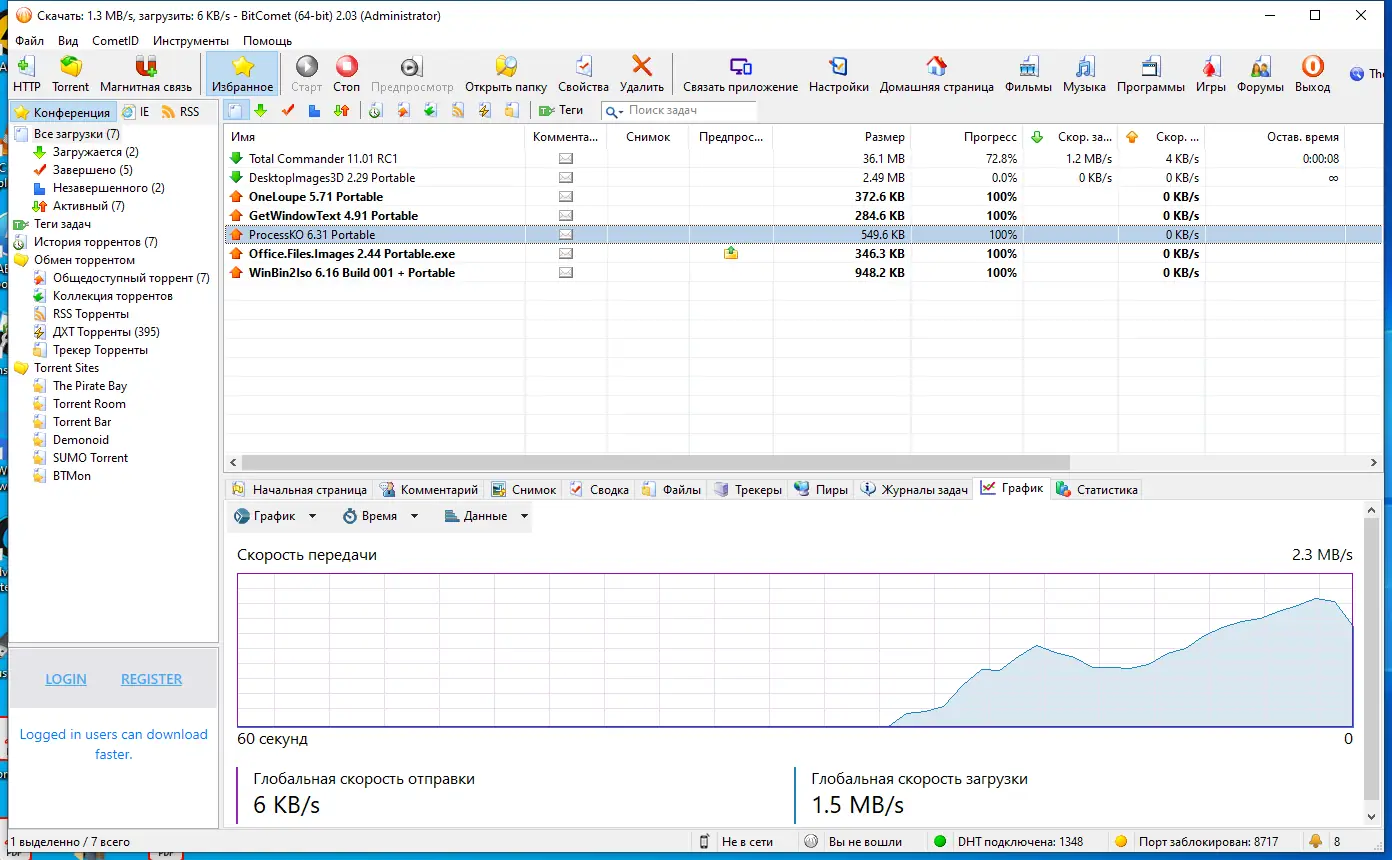 BitComet — это многофункциональный клиент для работы с торрент-сетями, разработанный с акцентом на производительность и удобство. Он позволяет управлять множеством загрузок одновременно, задавать приоритеты и расставлять задачи в очередь. Программа автоматически оптимизирует сетевые настройки, адаптируясь под текущие условия подключения, включая работу с брандмауэрами и другими загрузчиками. Поддержка DHT и обмена пирами расширяет возможности поиска раздач, даже если трекер недоступен.