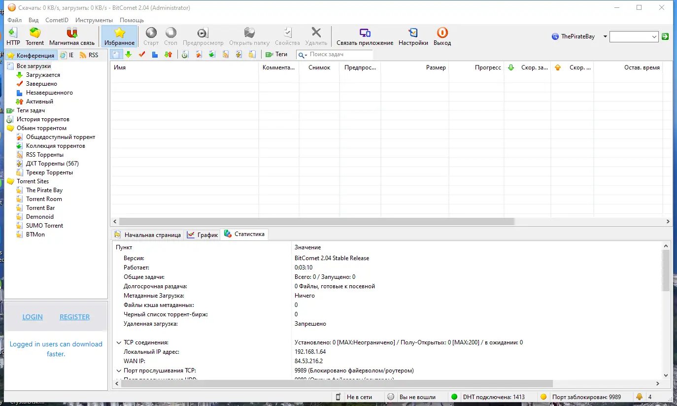 Использование BitComet не требует глубоких технических знаний. После запуска достаточно добавить торрент-файл или Magnet-ссылку, после чего клиент автоматически начнёт поиск пиров и закачку данных. Пользователь может задавать приоритеты отдельным файлам в раздаче, приостанавливать и возобновлять загрузки, а также настраивать лимиты скорости. В настройках доступна опция автоматического выключения компьютера по завершении всех задач, что удобно при ночной закачке. Встроенная статистика отображает детали активности: объём переданных данных, количество подключённых пиров, скорость отдачи и приёма. Также реализована поддержка чата с другими пользователями BitComet, что может быть полезно для обмена информацией в рамках раздачи.