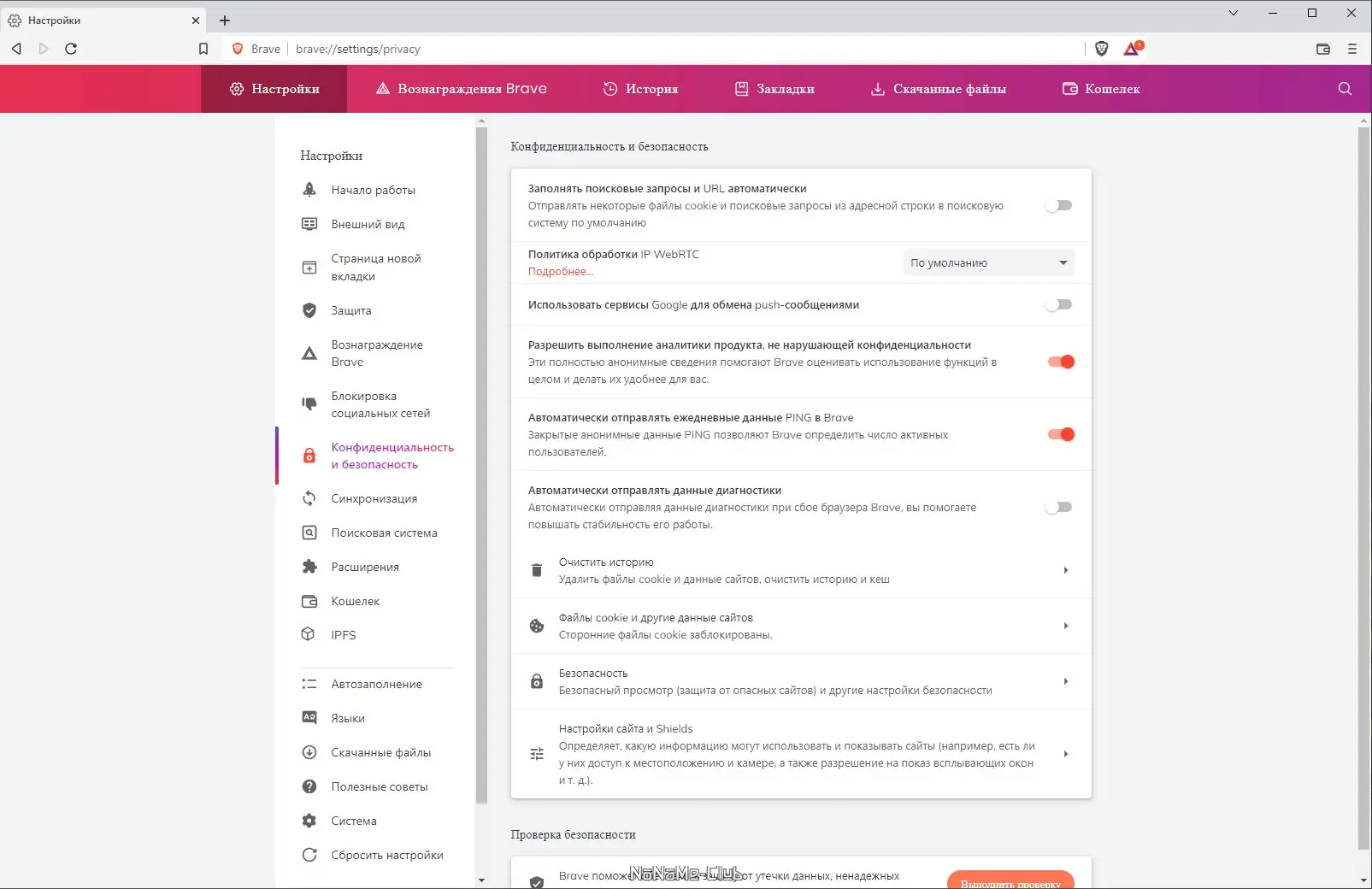 Работа с Brave Browser