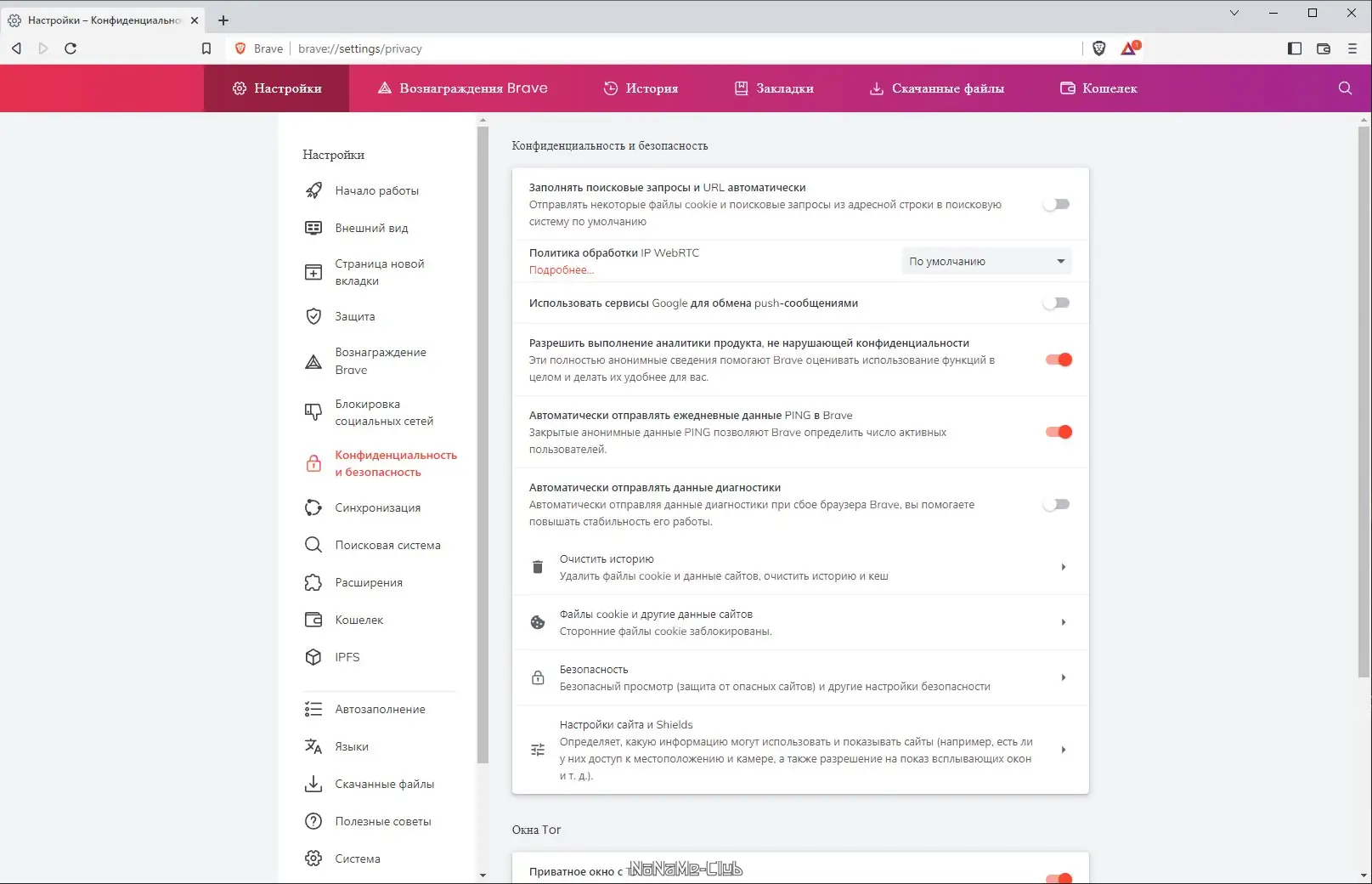 Работа с Brave Browser