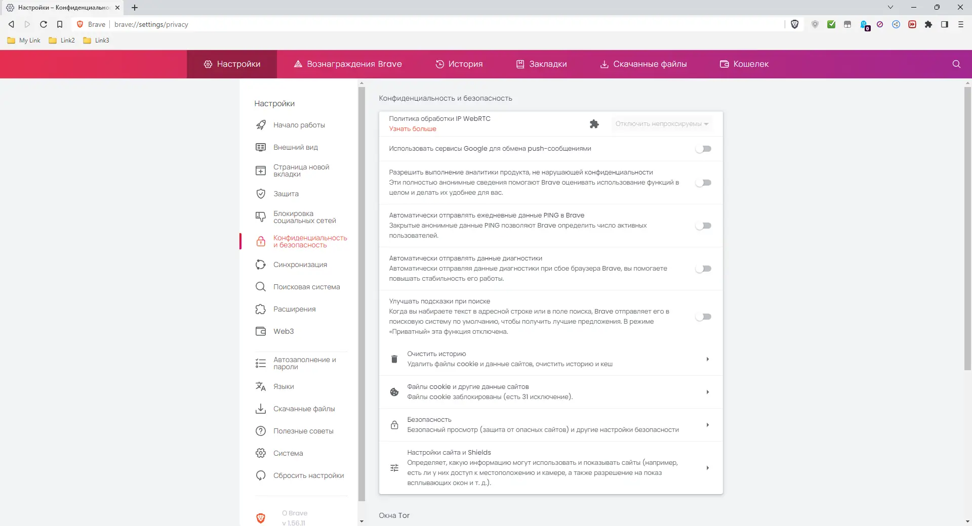 - Возможность получения вознаграждений через систему Brave Rewards
