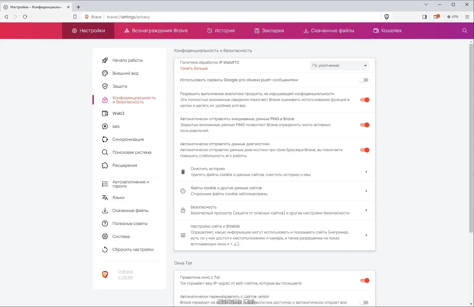 - Интеграция с криптовалютной системой Brave Rewards