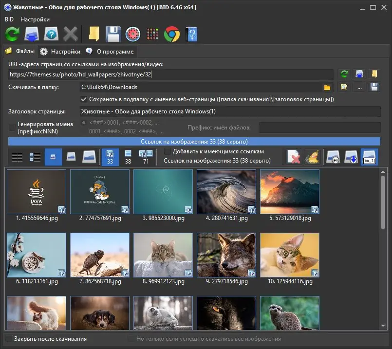 Работа с Bulk Image Downloader