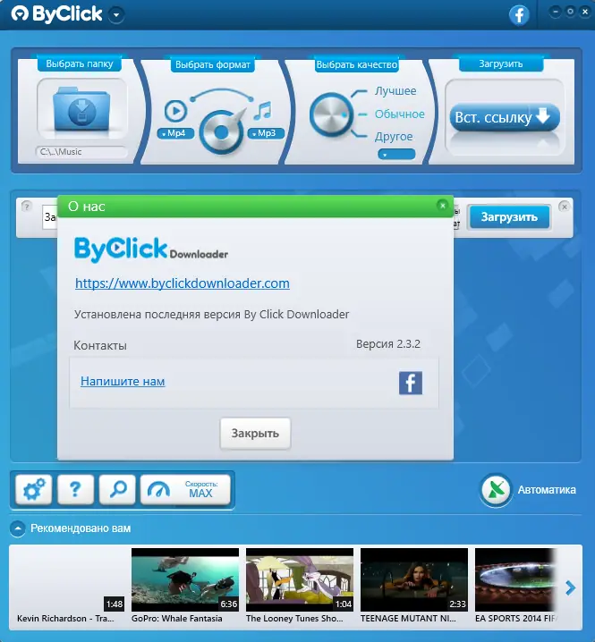 - Поддержка загрузки с YouTube, Facebook, Vimeo, Dailymotion, RuTube, OK.ru и других ресурсов