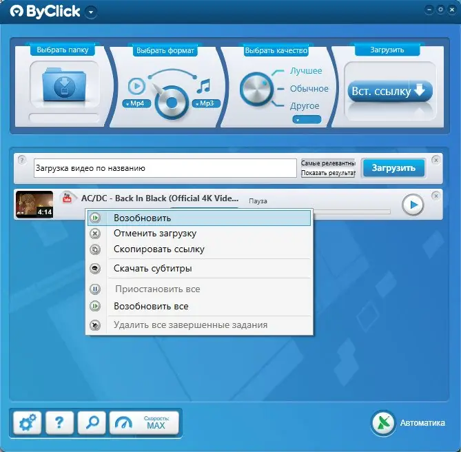 By Click Downloader — это универсальное приложение для быстрого и удобного скачивания видео с YouTube, Facebook, Vimeo, Dailymotion, RuTube, OK.ru и других популярных платформ. Программа поддерживает загрузку отдельных роликов, плейлистов и целых каналов в различных форматах и разрешениях, включая 720p, 1080p и 4K. Встроенный конвертер позволяет извлекать аудиодорожки в MP3, AAC, WAV и другие форматы, что делает её незаменимой для сохранения музыки и подкастов. Утилита совместима с основными браузерами и предлагает простой интерфейс, автоматическое определение контента и фоновую работу.