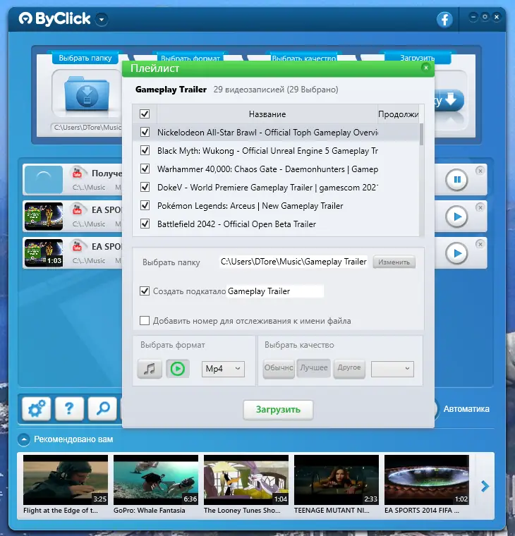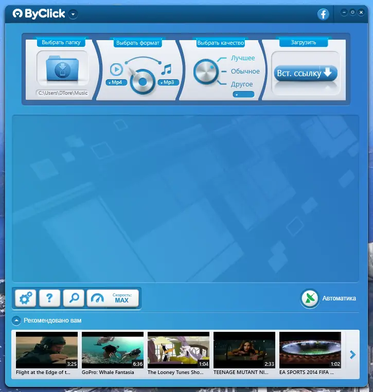ByClick Downloader — это многофункциональный инструмент для тех, кто регулярно работает с видеоматериалами из интернета. Приложение позволяет извлекать контент не только с YouTube, но и с таких ресурсов, как Facebook, Vimeo, Dailymotion, Instagram и RuTube. Поддержка множества форматов вывода делает его универсальным решением для сохранения контента в нужном виде — будь то аудиодорожка в формате MP3 или высококачественное видео в разрешении 4K. Программа автоматически определяет доступные потоки и предоставляет пользователю выбор по качеству и формату.