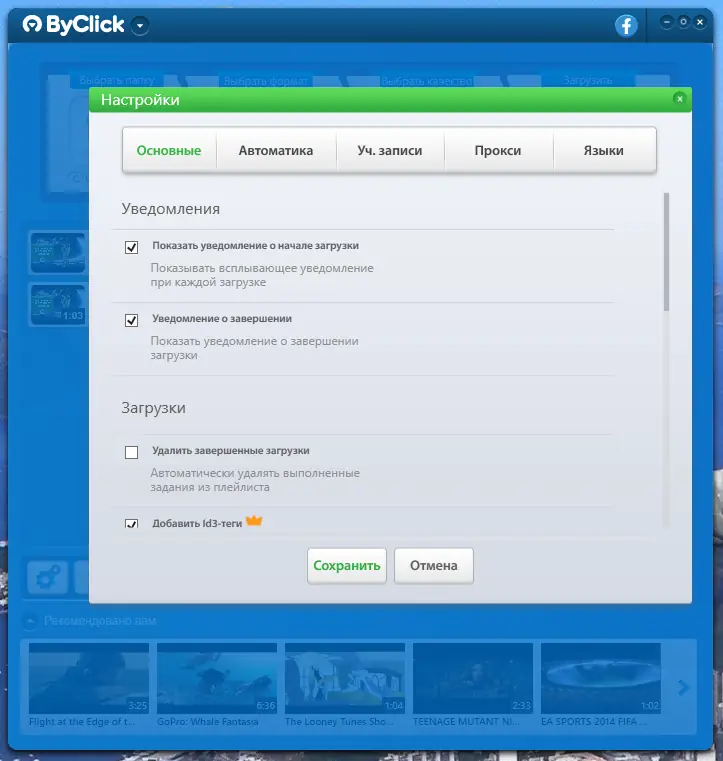 ByClick Downloader — это удобное приложение для скачивания видео и аудио с YouTube, Facebook, Vimeo, RuTube, OK.ru и других популярных платформ. Программа поддерживает высокие разрешения, включая 1080p и 4K, а также конвертацию в такие форматы, как MP3, MP4, AVI и другие. Благодаря простому интерфейсу и расширенным настройкам, загрузка медиафайлов становится быстрой и интуитивно понятной.
