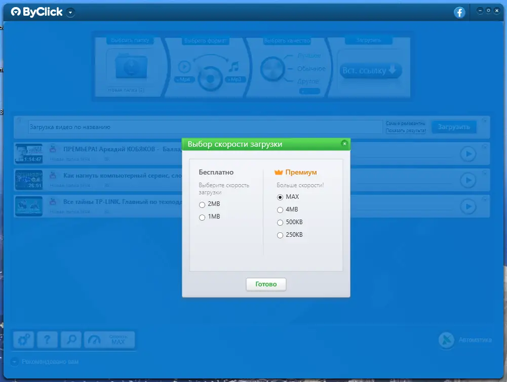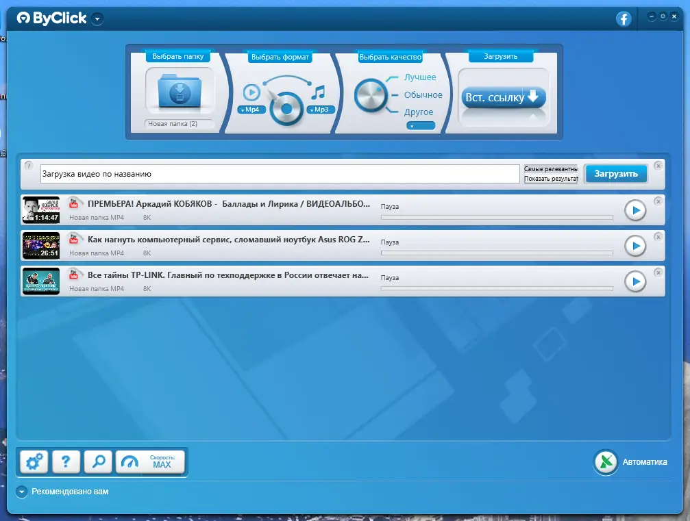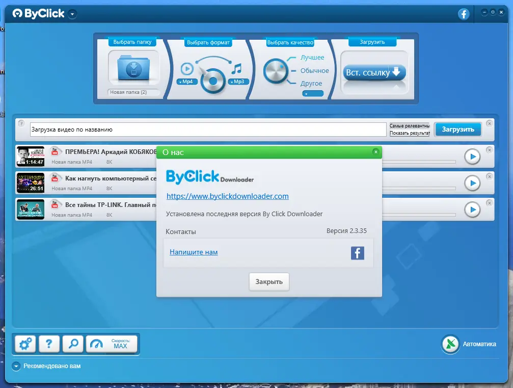 ByClick Downloader — это универсальное приложение для загрузки видео и аудио с YouTube, Facebook, Vimeo, OK.ru, RuTube и других популярных платформ. Программа поддерживает высокие разрешения, включая 1080p и 4K, а также конвертацию в форматы MP3, MP4, AVI, MKV и другие. Удобный интерфейс и интеграция с браузерами делают процесс скачивания простым и быстрым.