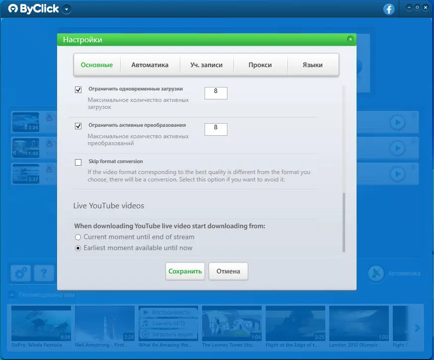 ByClick Downloader — это многофункциональный инструмент для загрузки видео и аудио с YouTube, Facebook, Vimeo, RuTube, OK.ru и других популярных платформ. Программа поддерживает высокие разрешения, включая 1080p и 4K, а также конвертацию в различные форматы, такие как MP3, MP4 и WAV. Утилита проста в использовании и работает совместно с основными веб-браузерами.