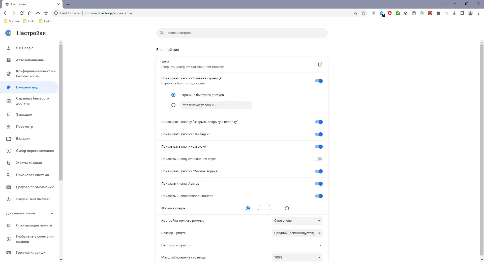 Работа с Cent Browser