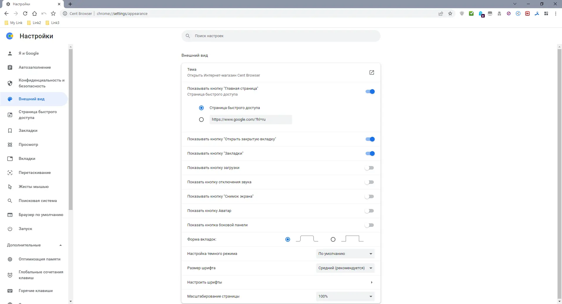 Использование Cent Browser не требует специальных навыков и интуитивно понятно даже новичкам. После запуска браузер автоматически применяет оптимальные настройки, но пользователь может адаптировать поведение вкладок, внешний вид интерфейса и работу дополнительных функций. Например, можно настроить реакцию на закрытие последней вкладки, включить автоскрытие панели закладок или активировать генератор QR-кодов для быстрого обмена ссылками. Жесты мышью настраиваются через встроенный интерфейс, что позволяет задать собственные комбинации для часто используемых действий.