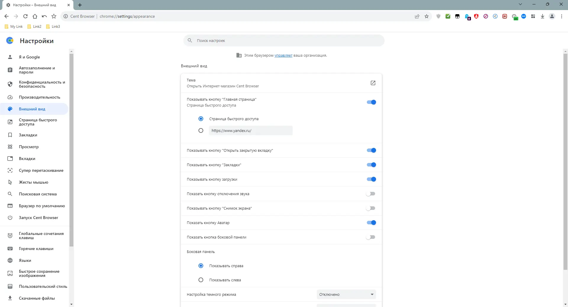 Работа с Cent Browser