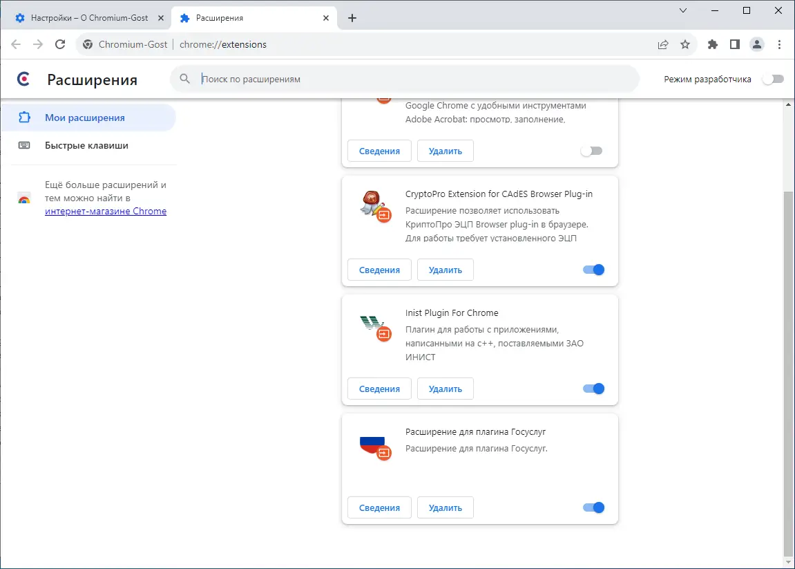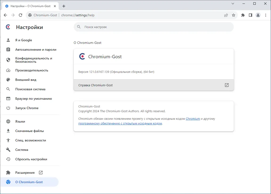 Chromium-Gost представляет собой форк известного open-source браузера, адаптированный под требования российской криптографии. В отличие от оригинального Chromium, который полагается на библиотеку BoringSSL, этот проект интегрирует интерфейс msspi для поддержки ГОСТ-алгоритмов. Это позволяет устанавливать безопасные соединения с ресурсами, требующими аутентификации через российские стандарты шифрования. Программа сохраняет весь привычный функционал: вкладки, закладки, синхронизацию и совместимость с расширениями из Chrome Web Store. Интерфейс полностью идентичен оригиналу, что делает переход максимально прозрачным. Поддержка ГОСТ реализована без вмешательства в пользовательский опыт — переключение между протоколами происходит автоматически.