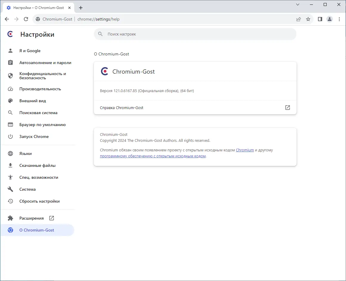 Chromium-Gost представляет собой форк популярного браузера Chromium, модифицированный с учётом требований российской криптографии. В отличие от стандартной версии, где используется библиотека BoringSSL, в этой сборке реализована поддержка ГОСТ через интерфейс msspi, что позволяет устанавливать защищённые соединения с ресурсами, использующими национальные стандарты шифрования. Это делает браузер подходящим инструментом для работы с государственными, корпоративными и финансовыми сайтами, где требуется строгое соответствие требованиям информационной безопасности.