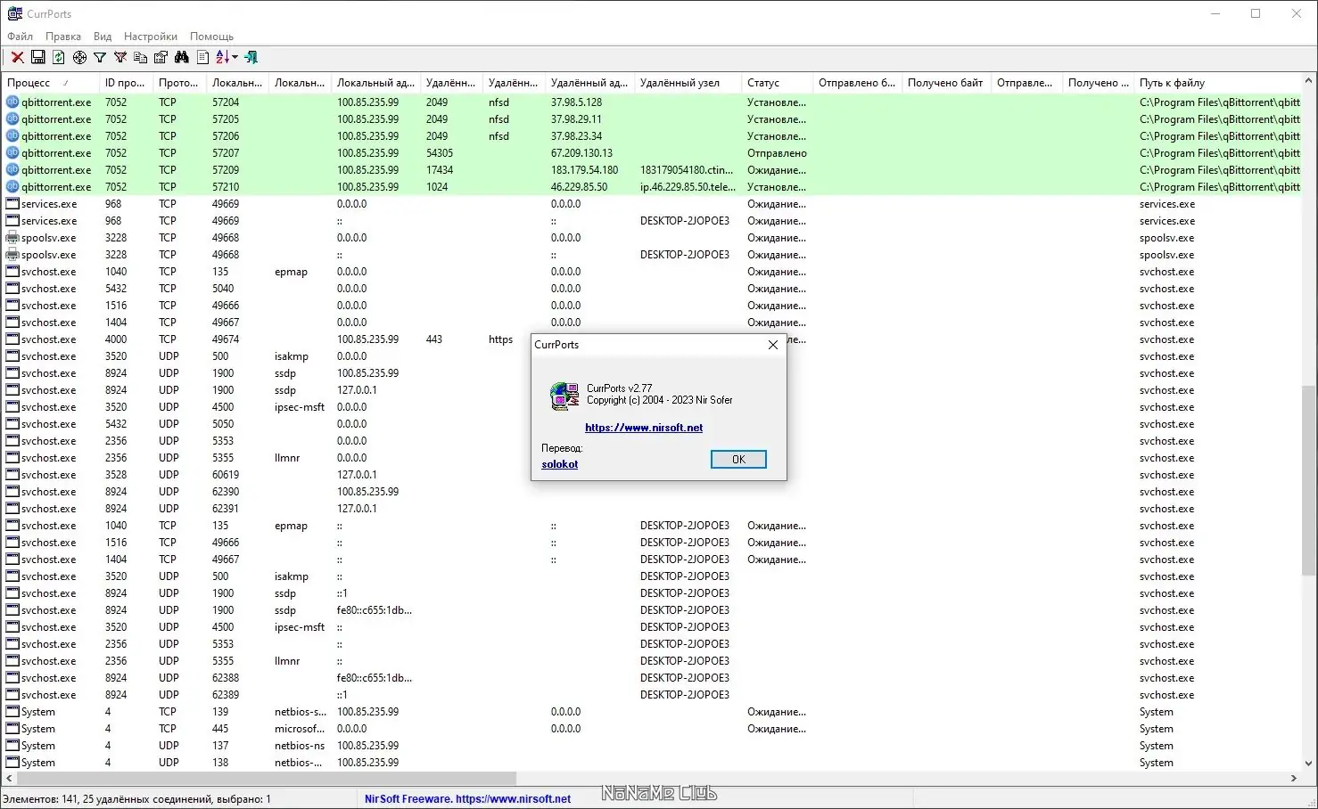 CurrPorts — это утилита для мониторинга сетевых портов, разработанная в рамках проекта nirsoft, известного своими компактными и эффективными инструментами для системного анализа. Программа работает в режиме реального времени, отображая подробные сведения о каждом активном соединении, включая локальные и удалённые адреса, состояние TCP-сессии, а также атрибуты процессов, инициировавших подключения. Это делает её ценным инструментом как для опытных пользователей, так и для системных администраторов.