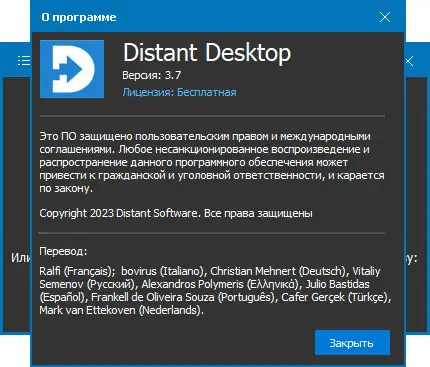 Distant Desktop — это портативная утилита для удалённого доступа к компьютерам, позволяющая управлять системой так, будто вы сидите за ней лично. Программа не требует установки, поддерживает передачу файлов, текстовый чат, голосовую связь и работу с несколькими подключениями одновременно.