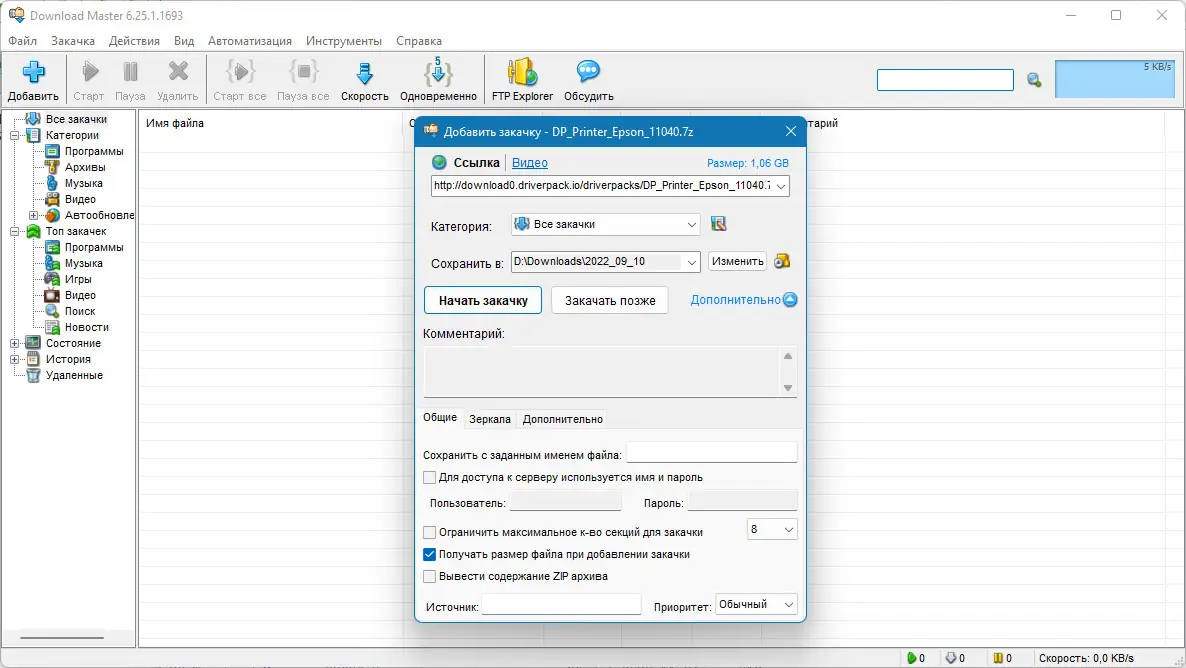 Работа с Download Master