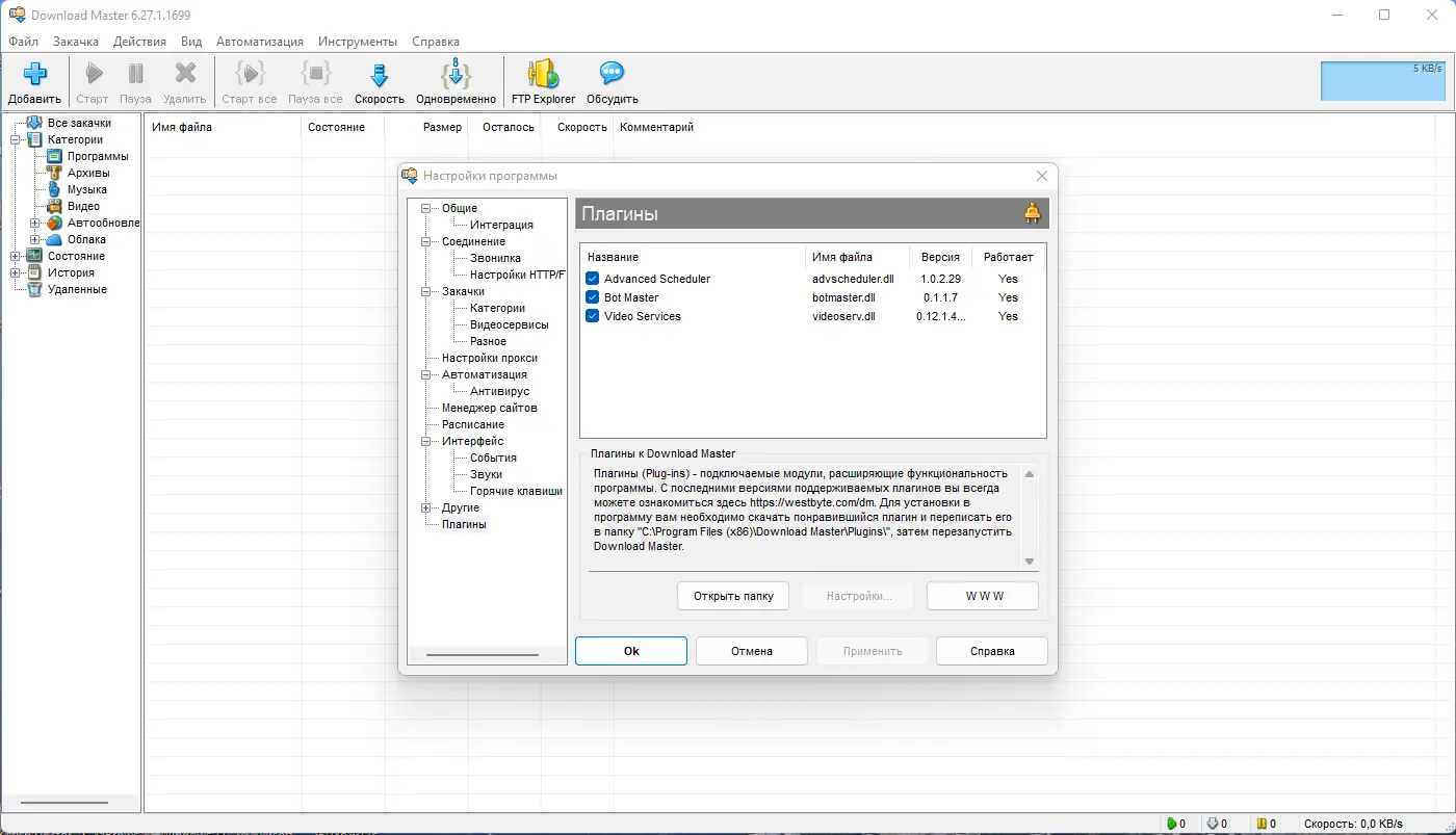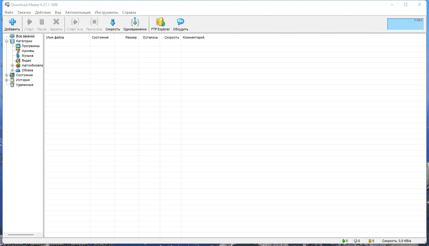 Download Master — это высокопроизводительный менеджер загрузок, разработанный для ускорения закачки файлов из интернета, восстановления прерванных соединений и удобного управления списками закачек. Программа поддерживает протоколы http, https и ftp, интегрируется с популярными браузерами и предлагает широкие возможности настройки. Благодаря интеллектуальной многопоточной загрузке, пользователь может значительно увеличить скорость получения данных.