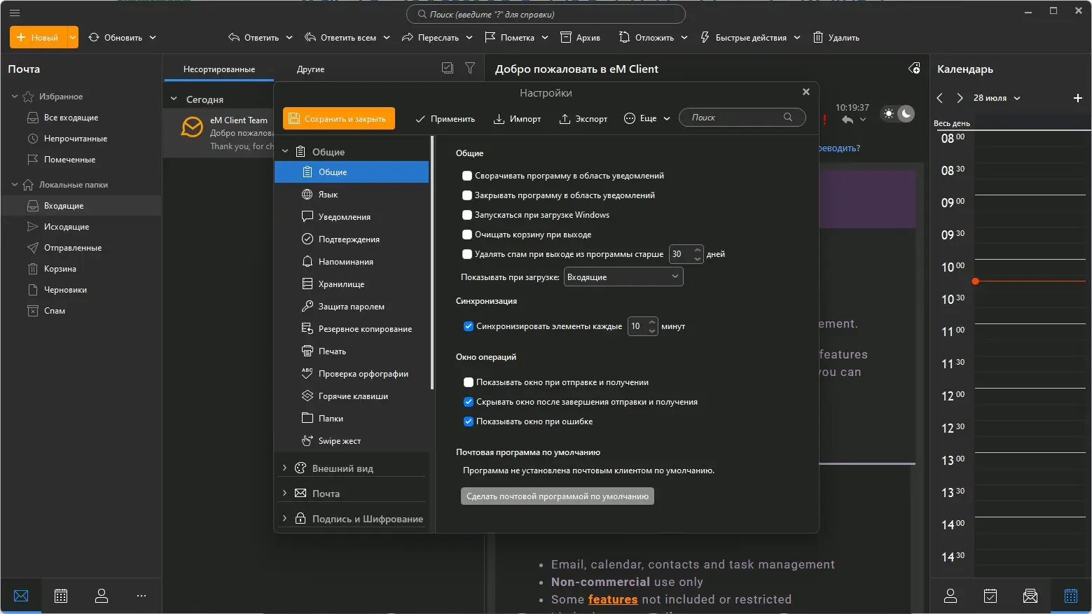 eM Client демонстрирует высокий уровень интеграции всех компонентов, что делает его удобным инструментом для повседневного использования. Программа оптимизирована под современные версии Windows, включая 10 и 11, и предлагает как классическую установку, так и portable-версию для запуска с флеш-накопителя. Поддержка русского языка, включая словари для проверки орфографии, делает использование комфортным для русскоязычных пользователей.
