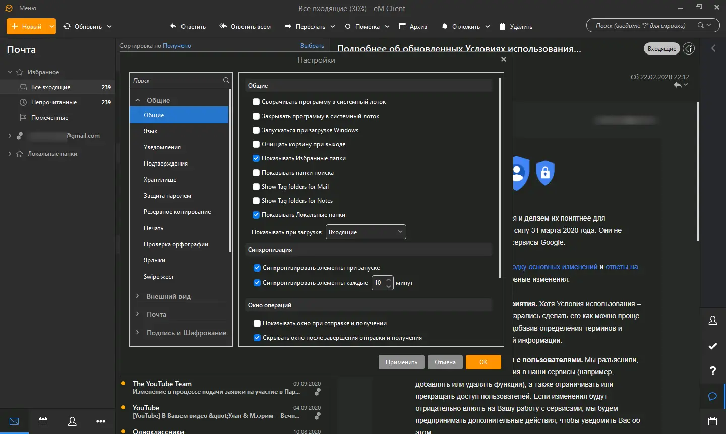 - Высокая скорость синхронизации и стабильная работа даже при большом количестве писем