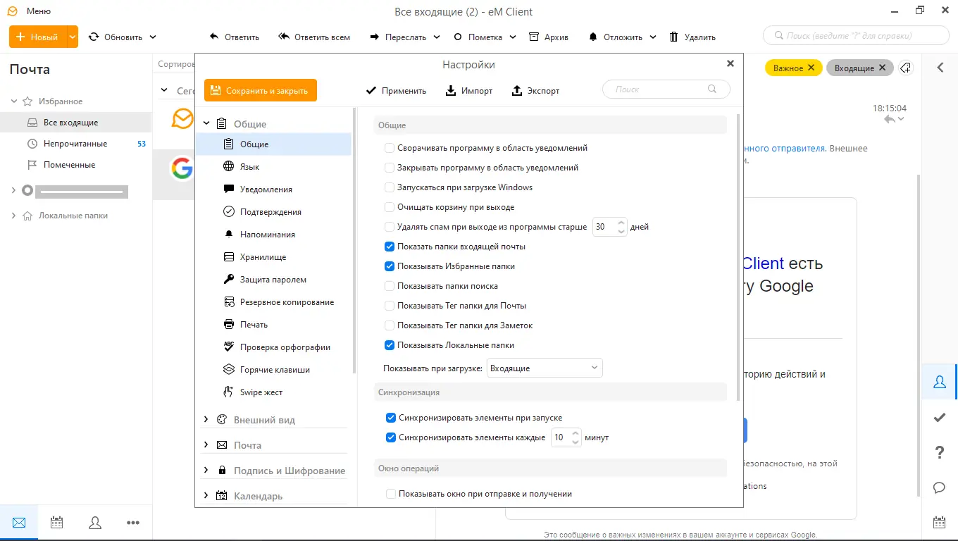 Работа с eM Client
