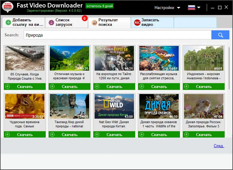 Работа с Fast Video Downloader