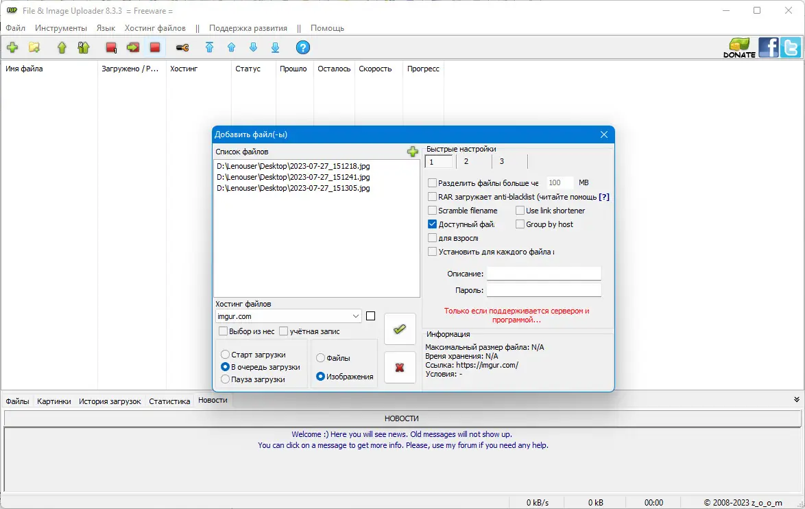 - Функция одновременной передачи нескольких файлов на разные хостинги.
