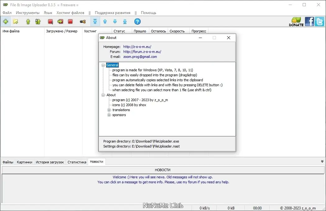 Программа доступна в бесплатной версии с возможностью пожертвования для поддержки разработчика. Лицензированная версия предоставляется как благодарность за вклад в развитие проекта и может включать расширенные возможности. Обновления выходят регулярно, как, например, версия 8.3.5 от 27.08.2023, добавившая поддержку streamdav.com, mirrored.to и abyss.to, а также мелкие улучшения. Портативная сборка позволяет запускать File & Image Uploader с флеш-накопителя без инсталляции.