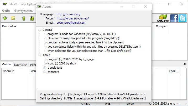 File & Image Uploader — портативное приложение для быстрой загрузки файлов, изображений и видео на более чем 250 файловых хостингов. Программа поддерживает премиум-аккаунты, прокси, многопоточную передачу и управление скоростью. Подходит для пользователей, регулярно работающих с облачными хранилищами и сервисами обмена файлами.