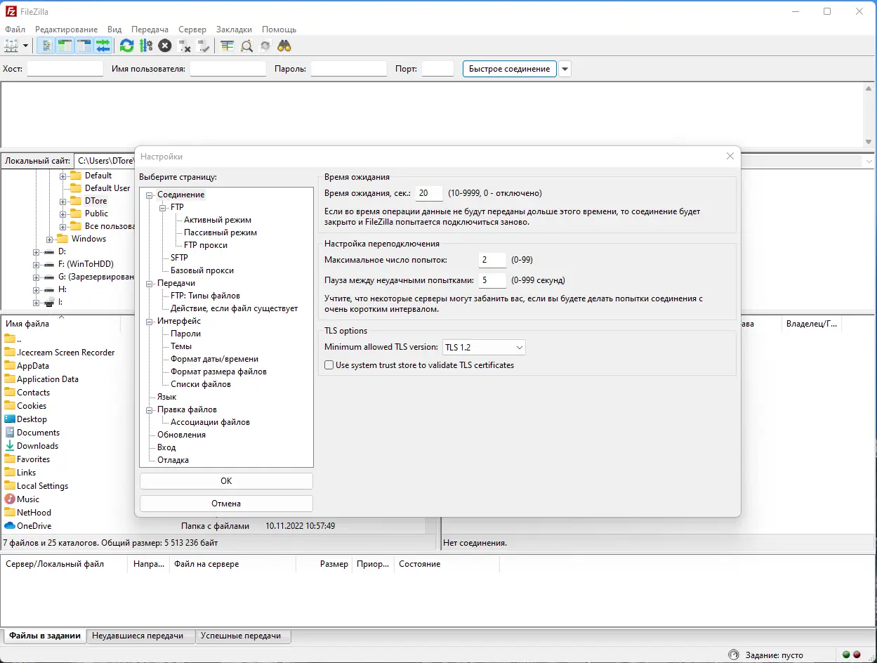 Работа с FileZilla