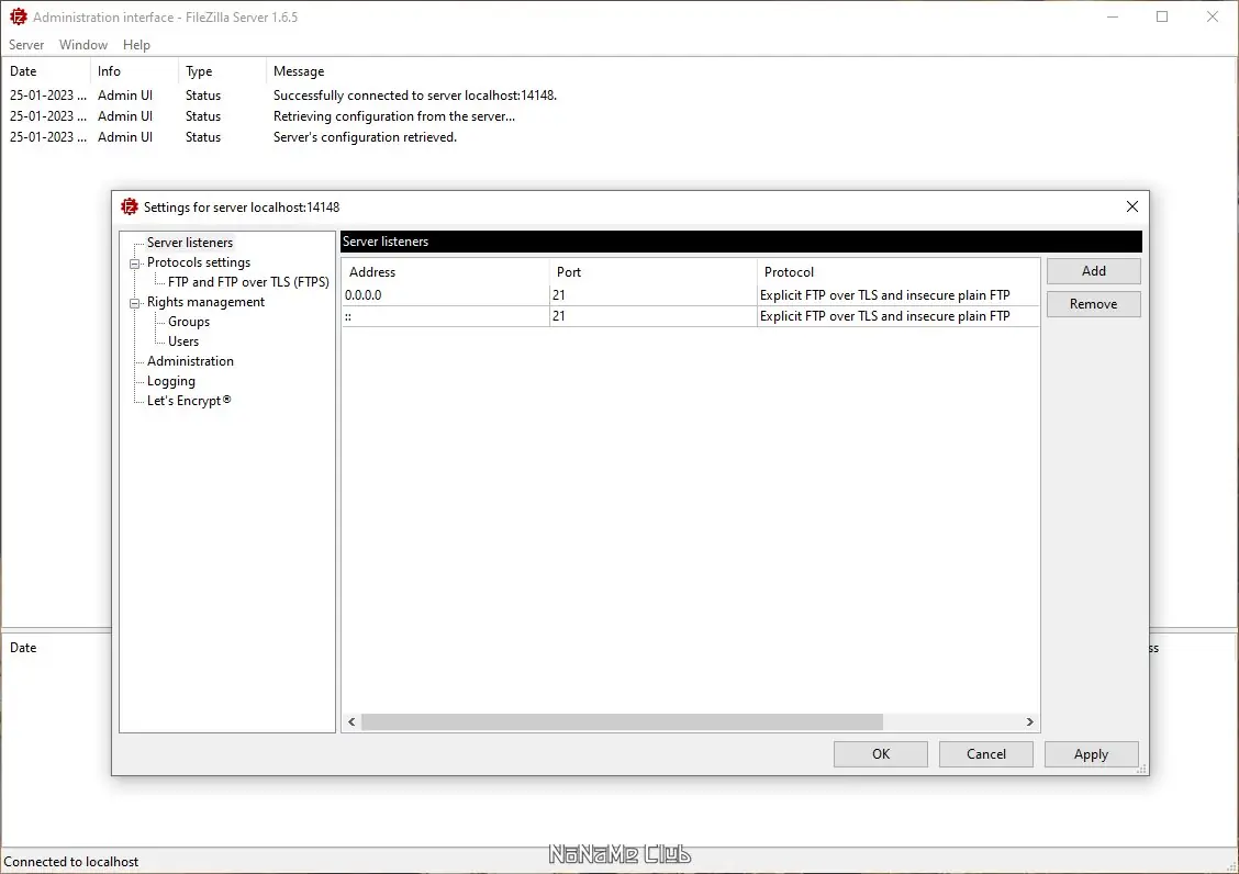- FileZilla server распространяется бесплатно и имеет открытый исходный код.