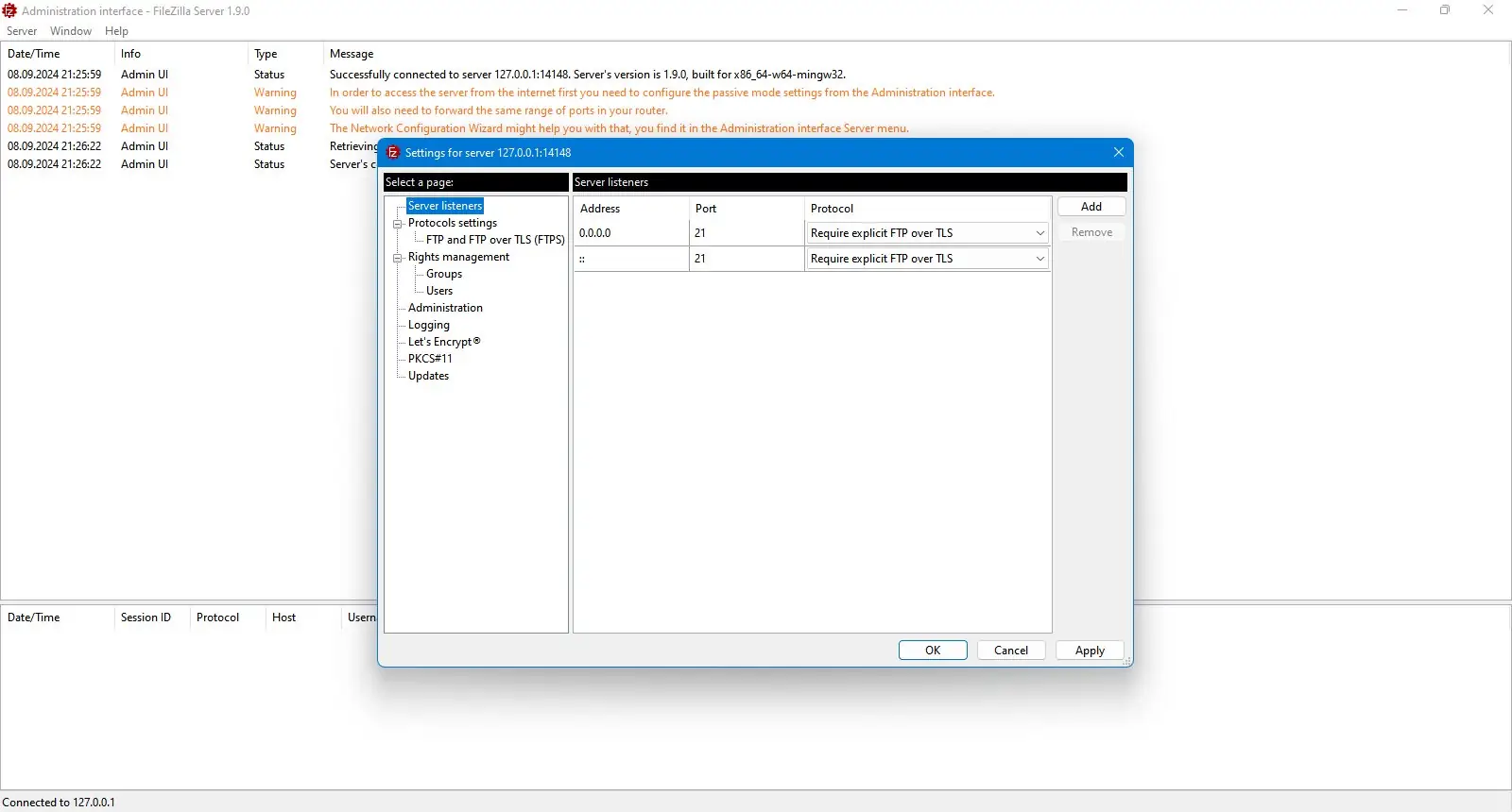 FileZilla Server сочетает в себе простоту установки и глубокие возможности настройки, что делает его популярным выбором среди системных администраторов.