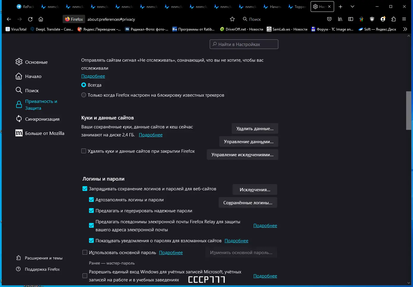 - Расширенные настройки приватности, включая режим «Не отслеживать»