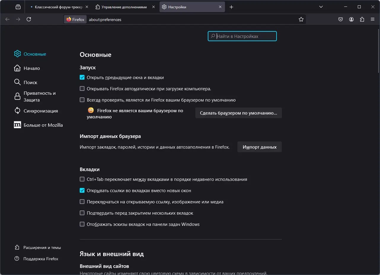 Работа с Firefox