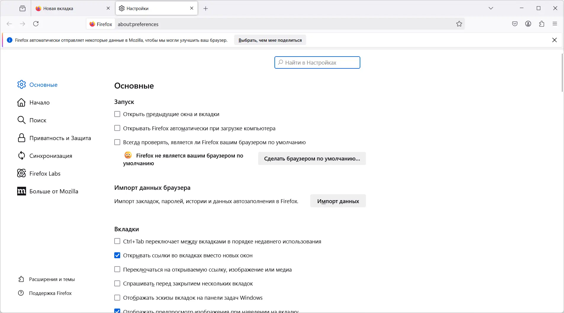Использование Firefox интуитивно понятно благодаря логичной структуре интерфейса. После запуска отображается стартовая страница с быстрыми ссылками, поисковой строкой и рекомендованным контентом. Умная панель адреса предлагает варианты перехода на ранее посещённые сайты или подсказывает запросы в реальном времени. Добавление закладок осуществляется одним кликом, а менеджер паролей автоматически предлагает сохранить или заполнить учётные данные. В настройках можно изменить внешний вид, выбрать тему, настроить поведение вкладок, приватность и производительность. Поддержка drag-and-drop упрощает управление вкладками и закладками, а панель поиска легко перенастраивается под предпочтительные системы.