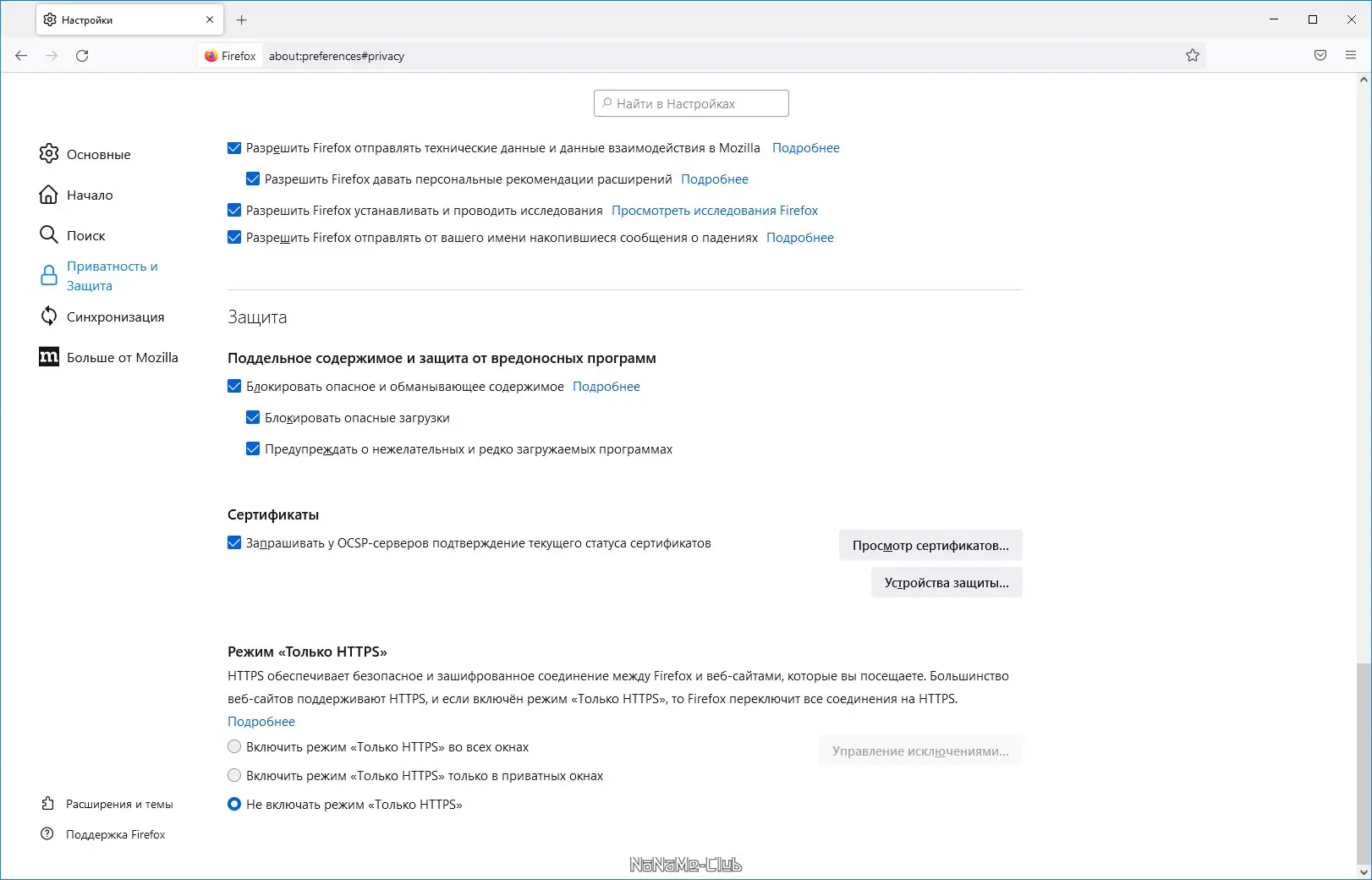 Работа с Firefox