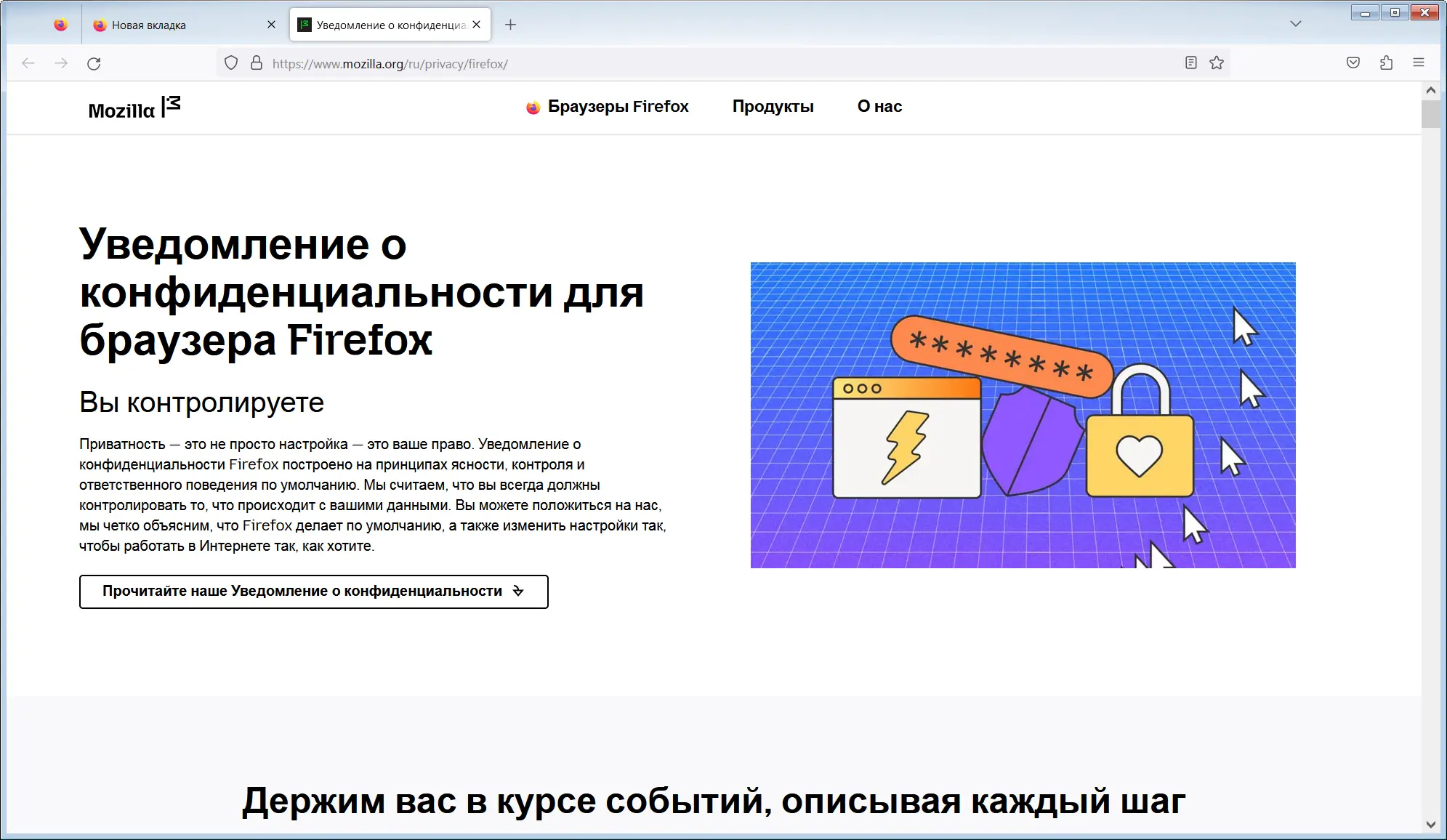 Firefox обеспечивает стабильную работу даже при открытии множества вкладок и интенсивном использовании ресурсоёмких веб-приложений.