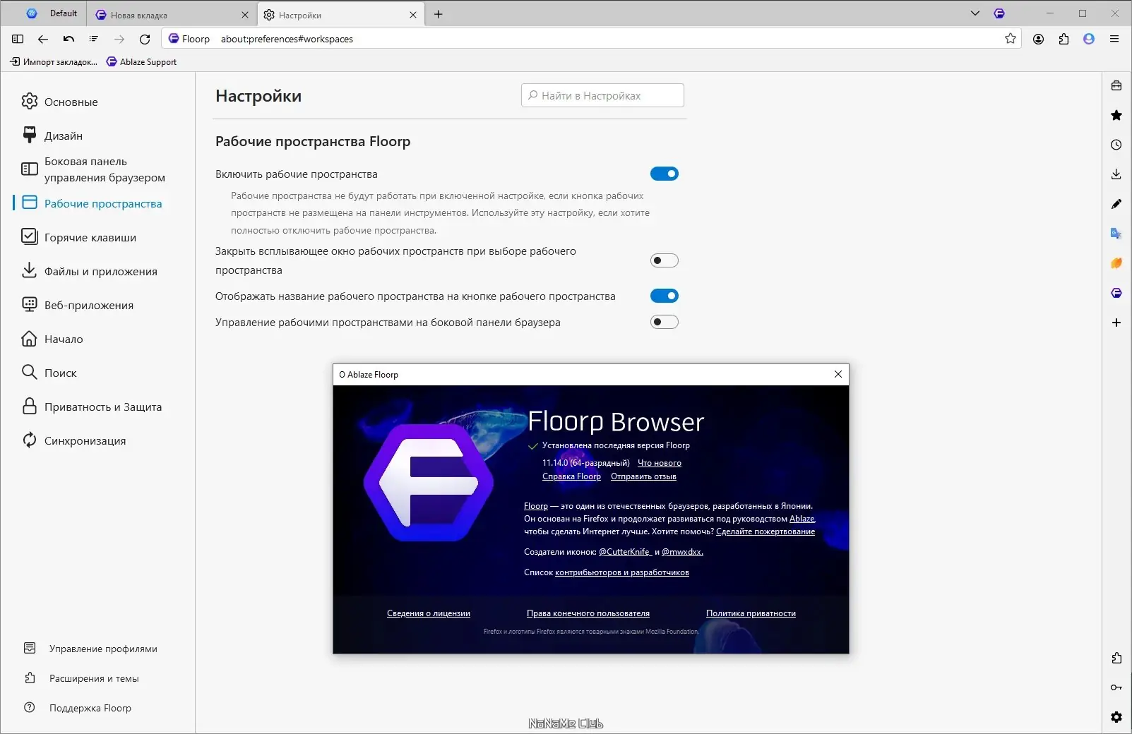 Работа с Floorp Browser