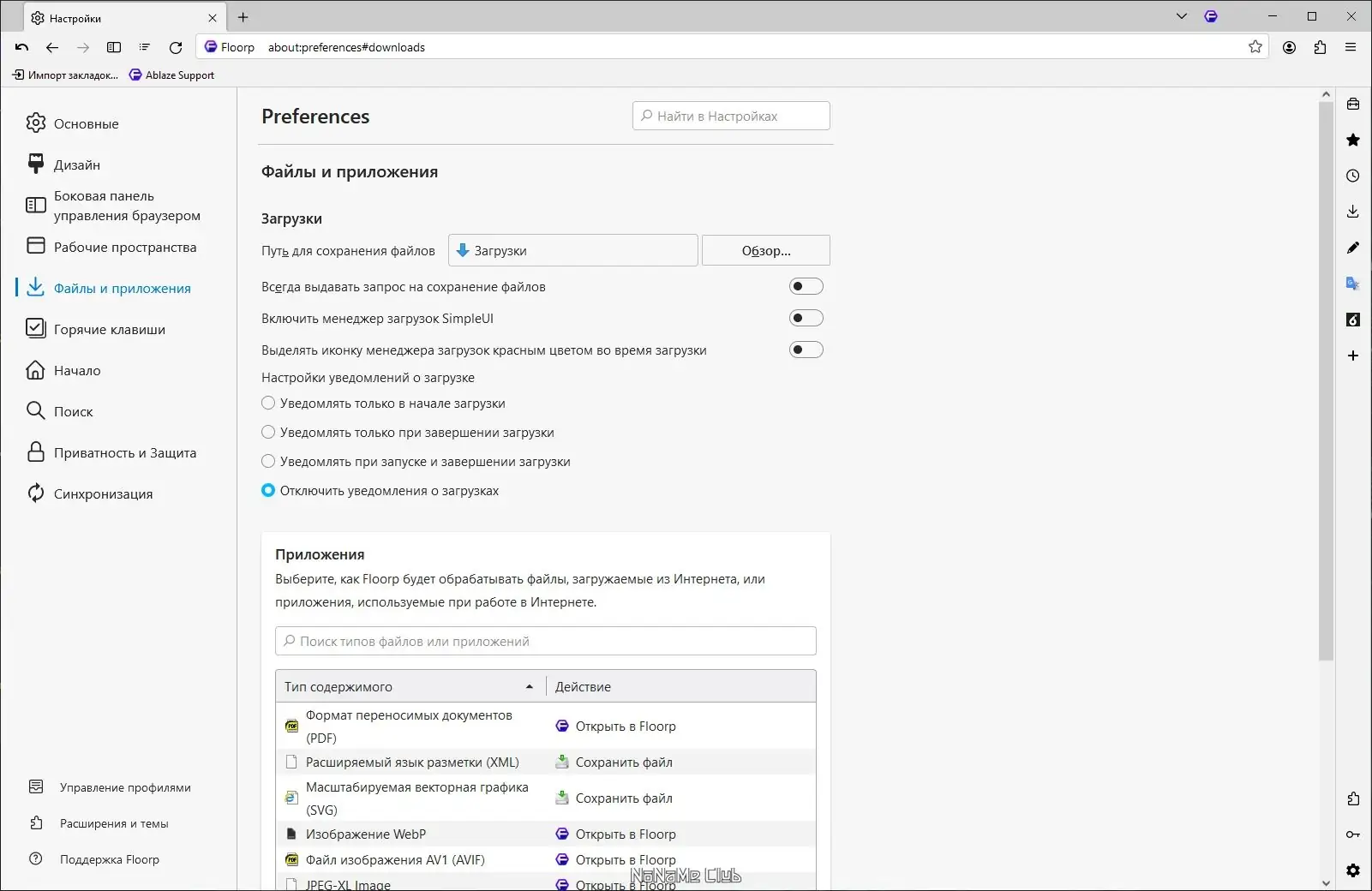 Работа с Floorp Browser