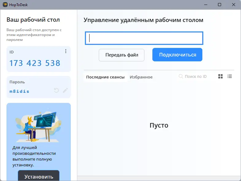 HopToDesk представляет собой решение для удалённого управления устройствами, позволяя подключаться к другим компьютерам для оказания технической поддержки, администрирования серверов или совместной работы. Это программное обеспечение активно используется как частными лицами, так и в бизнес-среде благодаря своей надёжности и простоте внедрения. что это за программа — становится понятно уже при первом запуске: это инструмент для удалённого доступа с открытым исходным кодом, основанный на архитектуре RustDesk.