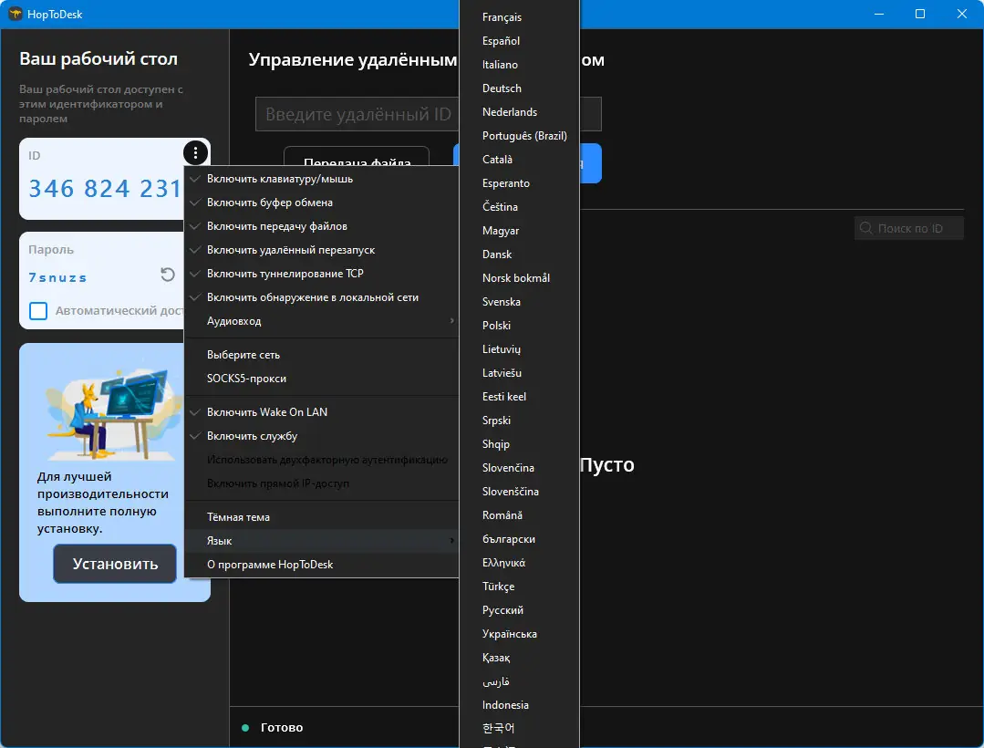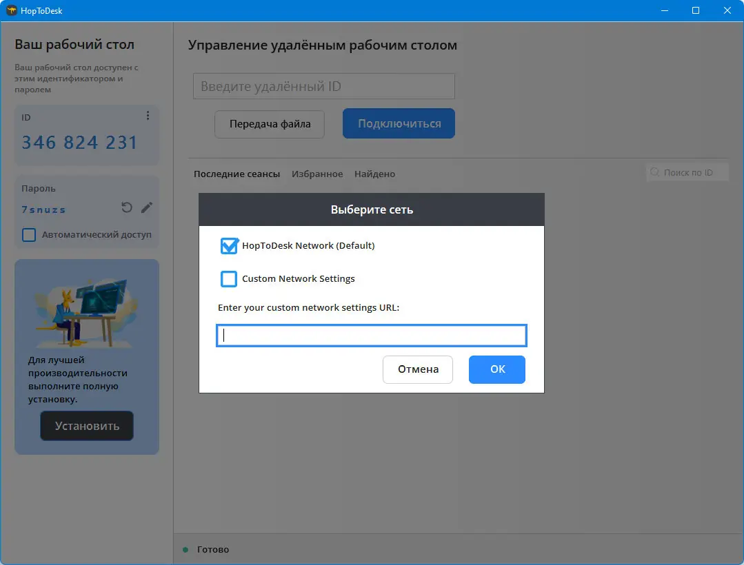 Работа с HopToDesk