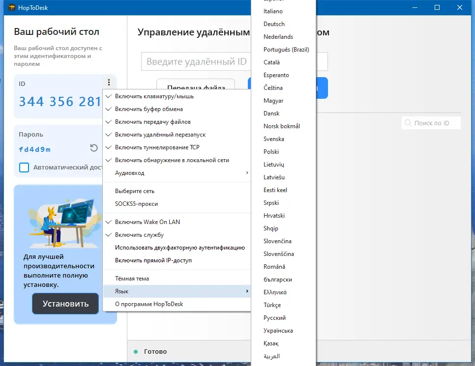 Работа с HopToDesk