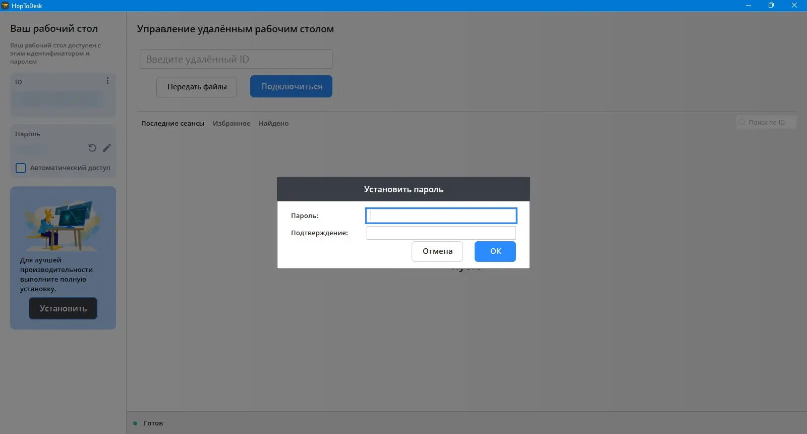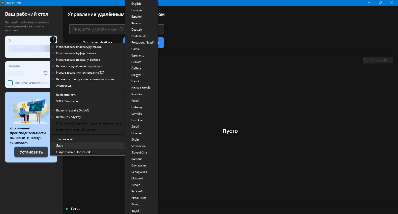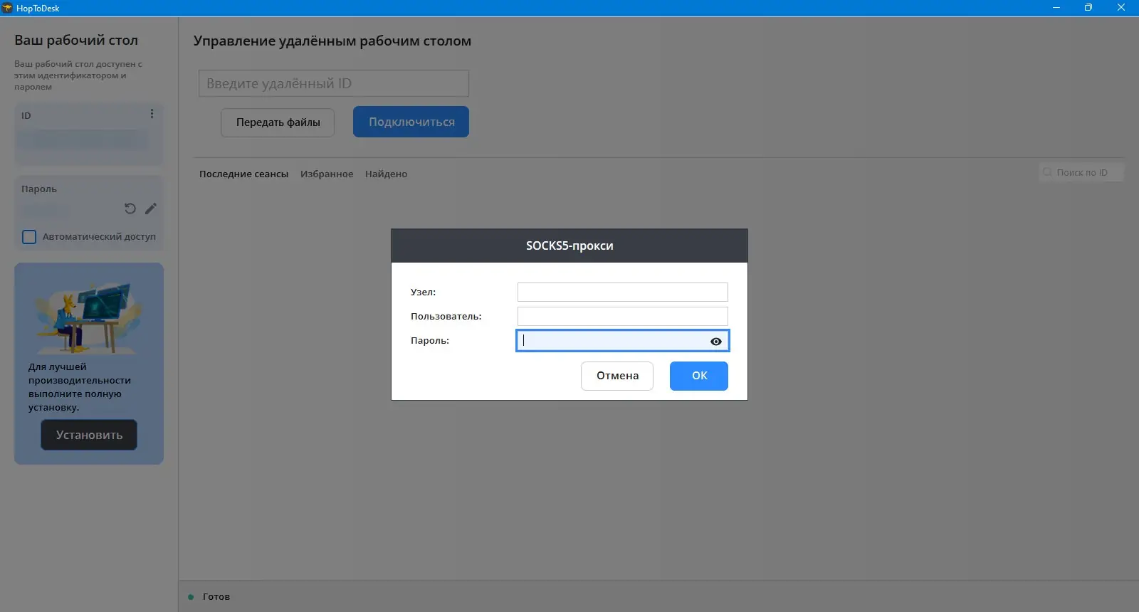 Работа с HopToDesk