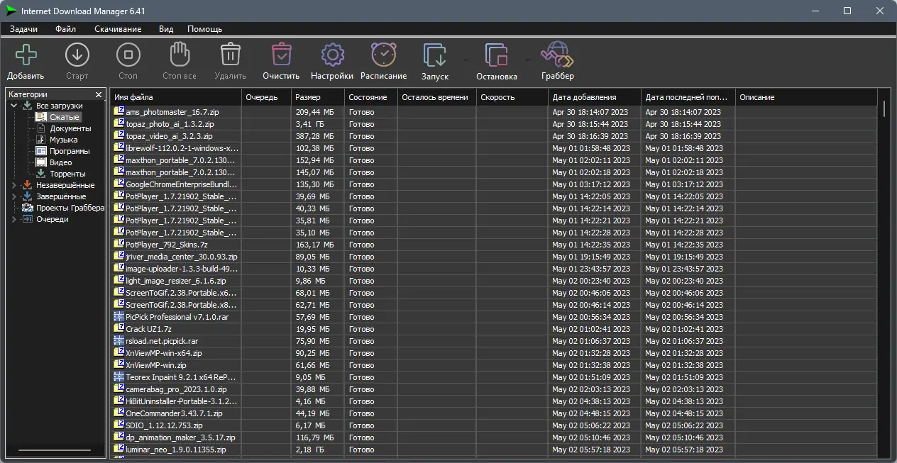 Internet Download Manager — мощное приложение для ускорения загрузки файлов из интернета, поддерживающее докачку, расписание и интеграцию с браузерами. Программа использует технологию динамической сегментации, многопоточную загрузку и интеллектуальное управление соединением. Благодаря эффективному алгоритму, загрузка происходит значительно быстрее по сравнению со стандартными средствами браузеров.