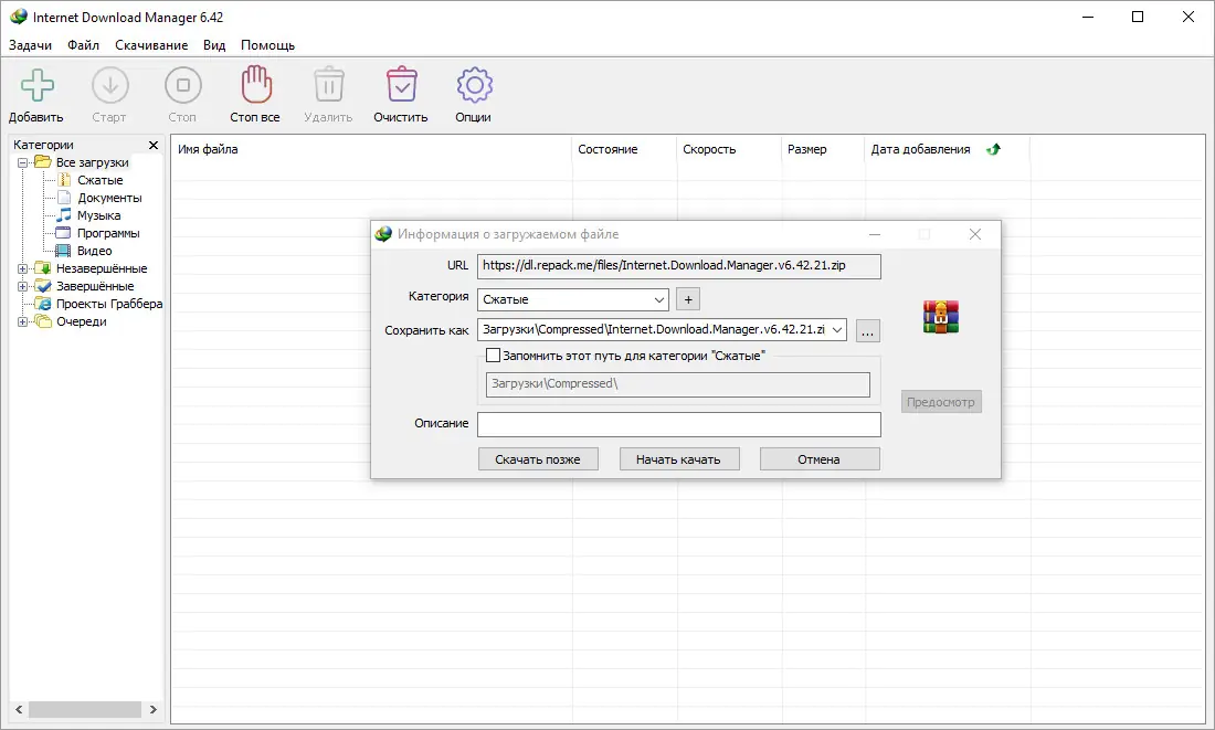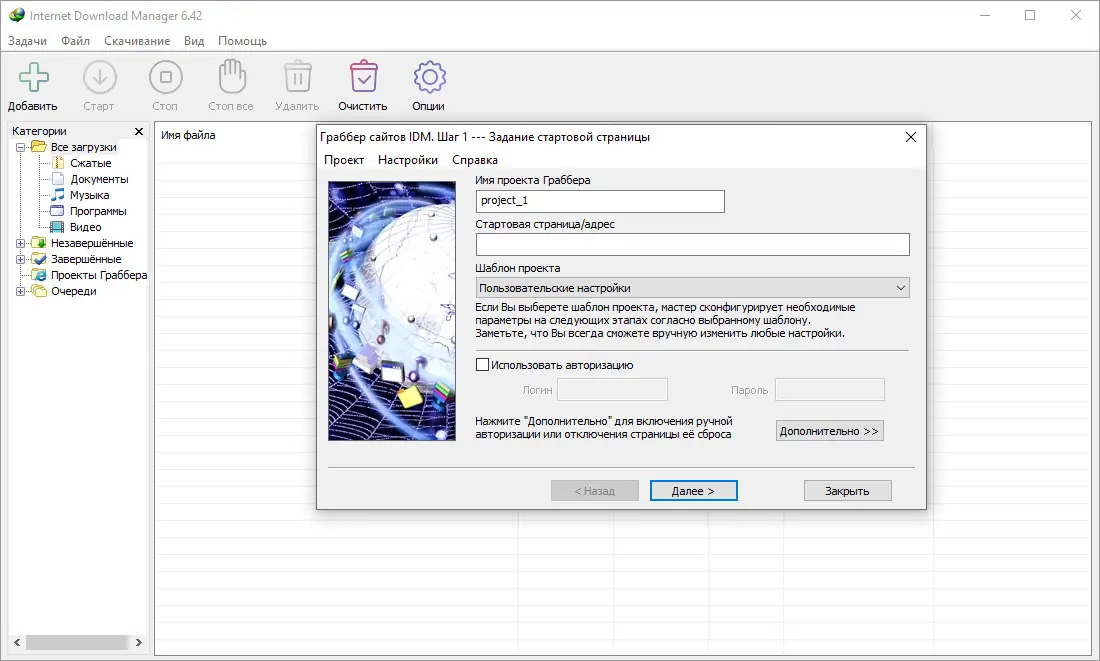 Работа с Internet Download Manager