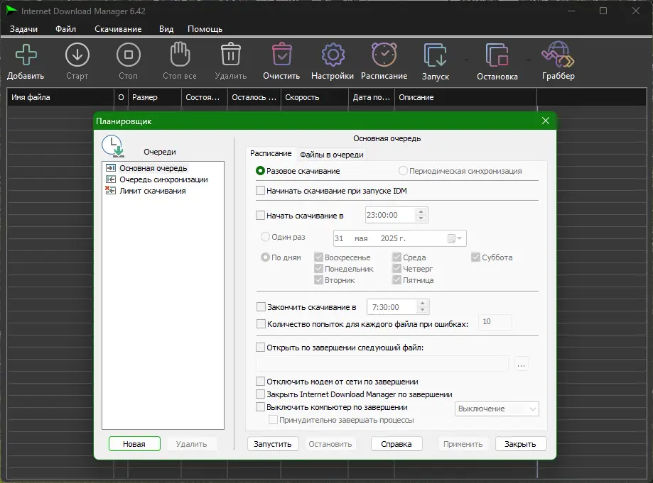 - Гибкие настройки расписания для отложенных закачек.