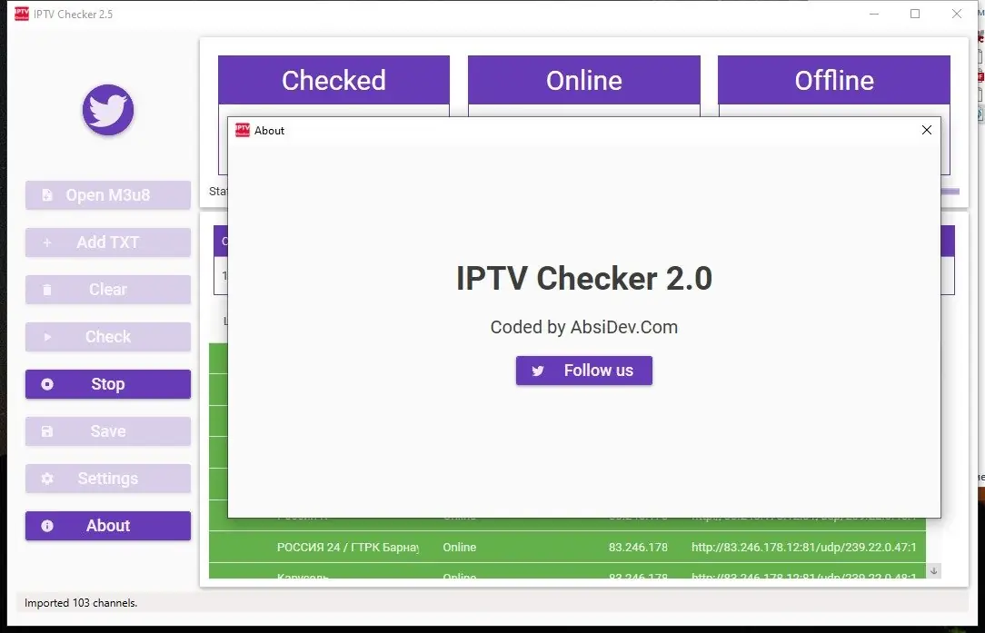 IPTV Checker — это специализированное приложение для тестирования и анализа потоковых ссылок, используемых в IPTV-сервисах. Оно помогает определить работоспособность каналов, исключая битые или временно недоступные потоки. Программа поддерживает импорт данных из различных источников, включая файлы и буфер обмена, что делает её универсальной для разных сценариев использования. Она подходит как для частных пользователей, так и для тех, кто управляет собственными плейлистами. Процесс проверки можно настроить под конкретные условия сети и предпочтения. Результаты отображаются наглядно, с возможностью фильтрации и последующего экспорта.