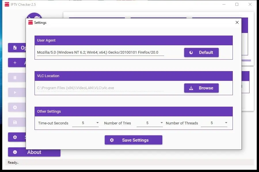 Программа позволяет использовать пользовательский User-Agent, что повышает шансы на успешное подключение к защищённым или фильтруемым потокам.